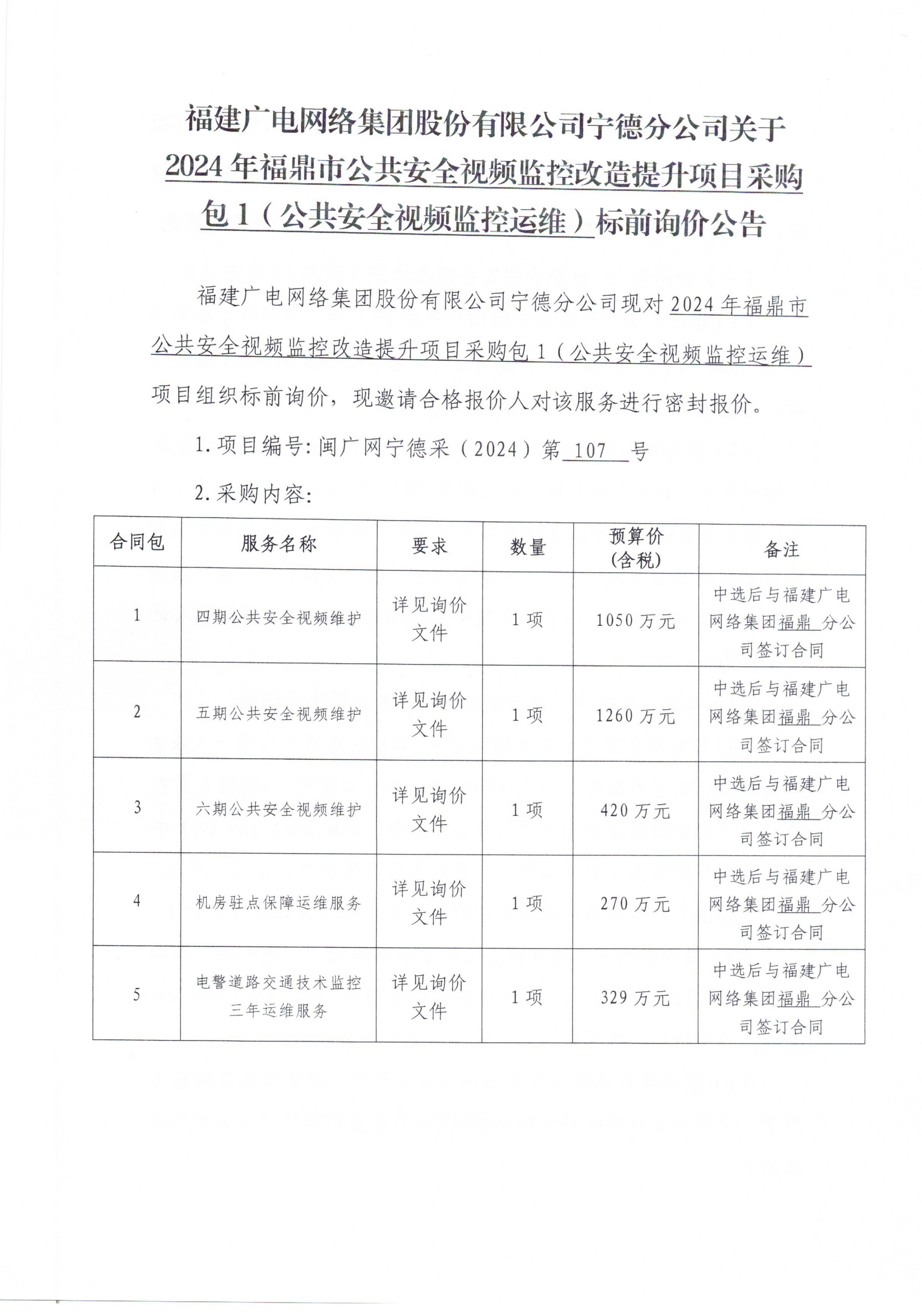2024年福鼎市公共安全视频监控改造提升项目包一(公共安全视频监控运维)