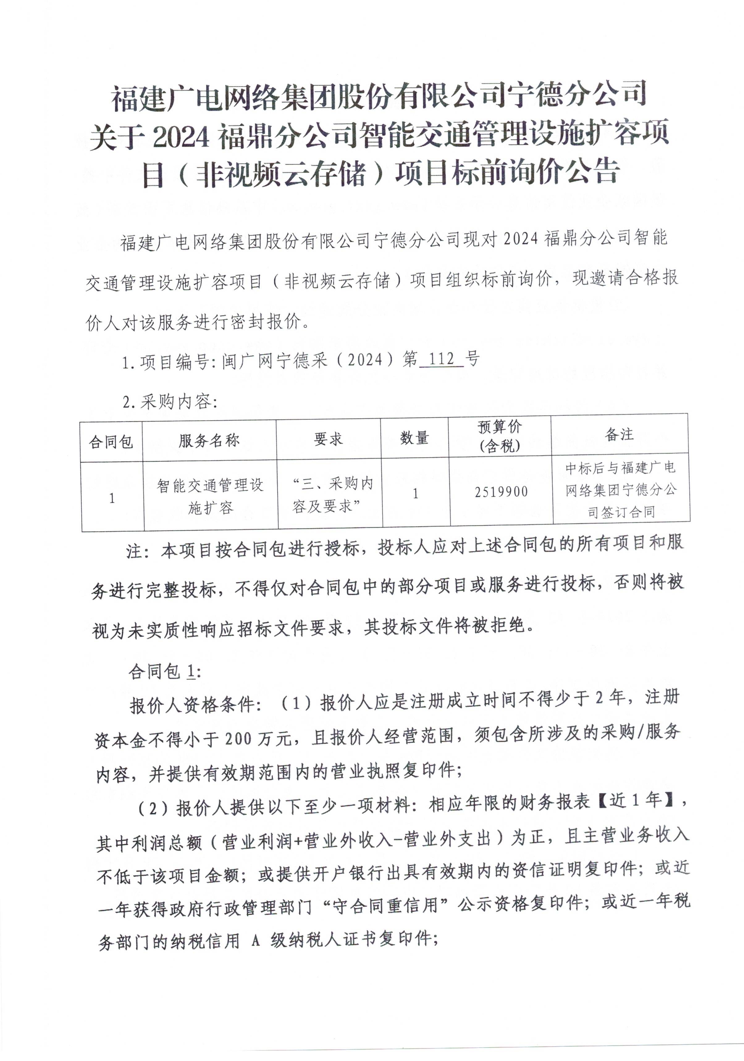 2024福鼎分公司智能交通管理设施扩容项目(非视频云存储)