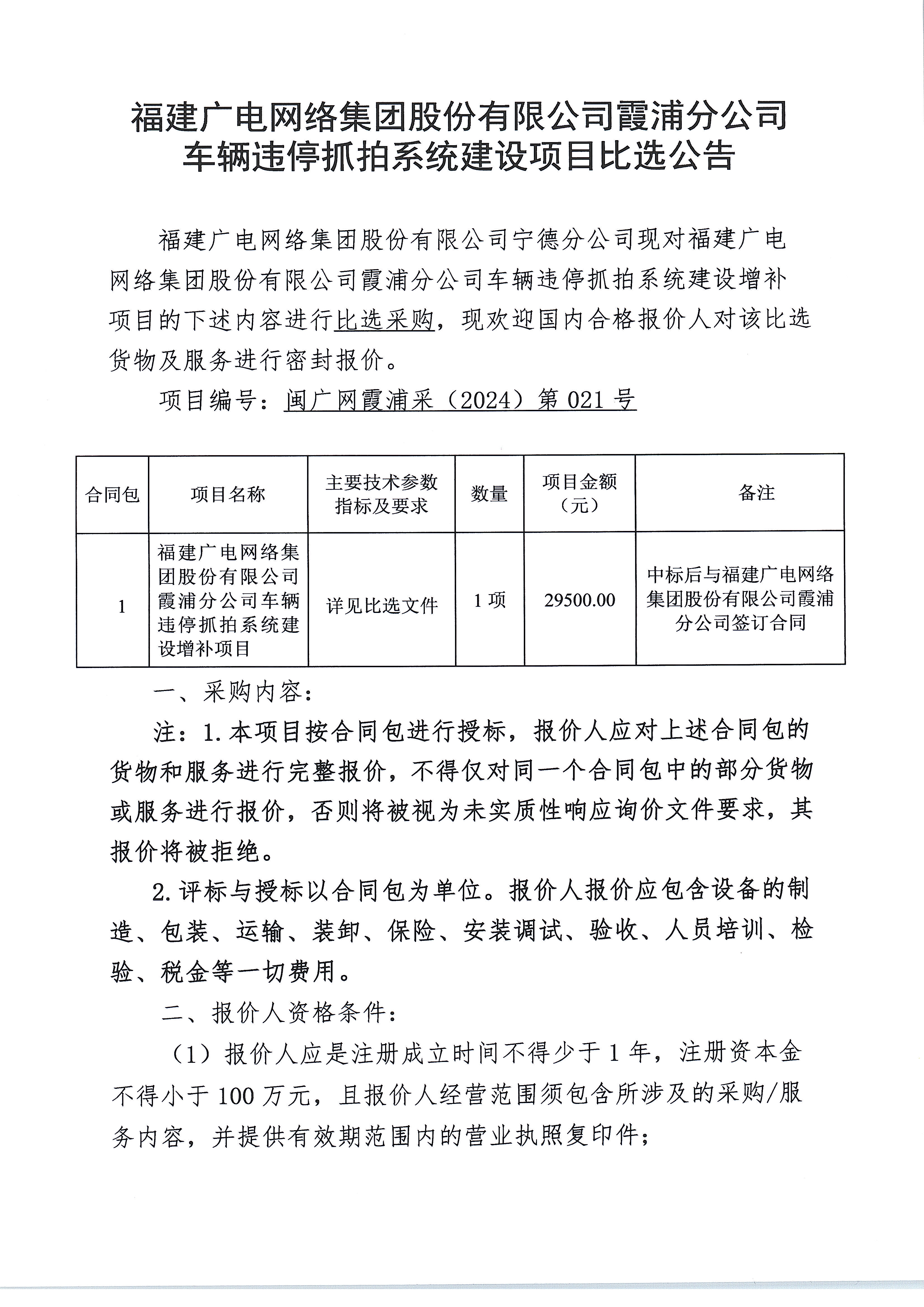 新利网上注册首页(中国)官方网站霞浦分公司车辆违停抓拍系统建设增补项目