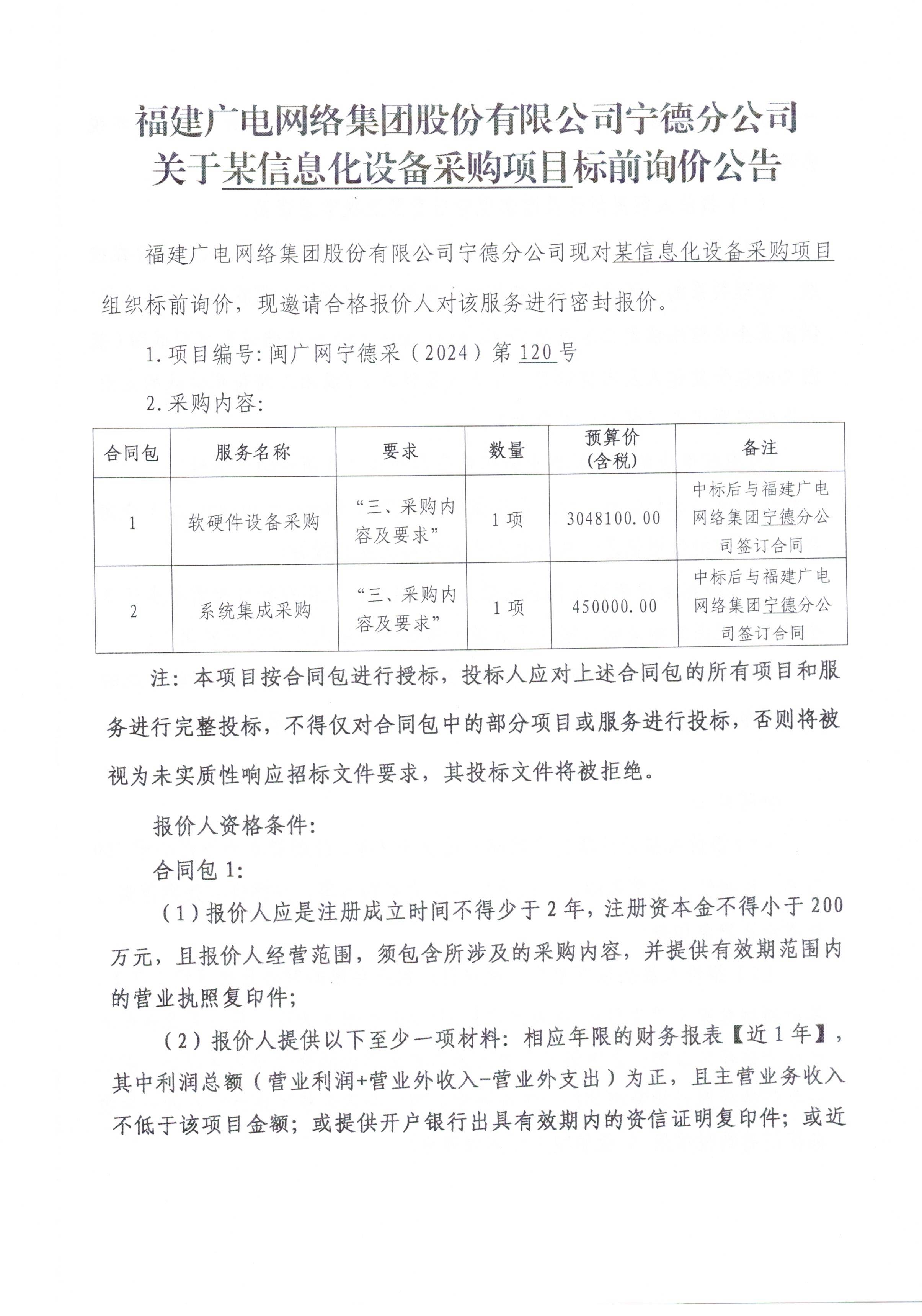新利网上注册首页(中国)官方网站宁德分公司关于某信息化设备采购项目