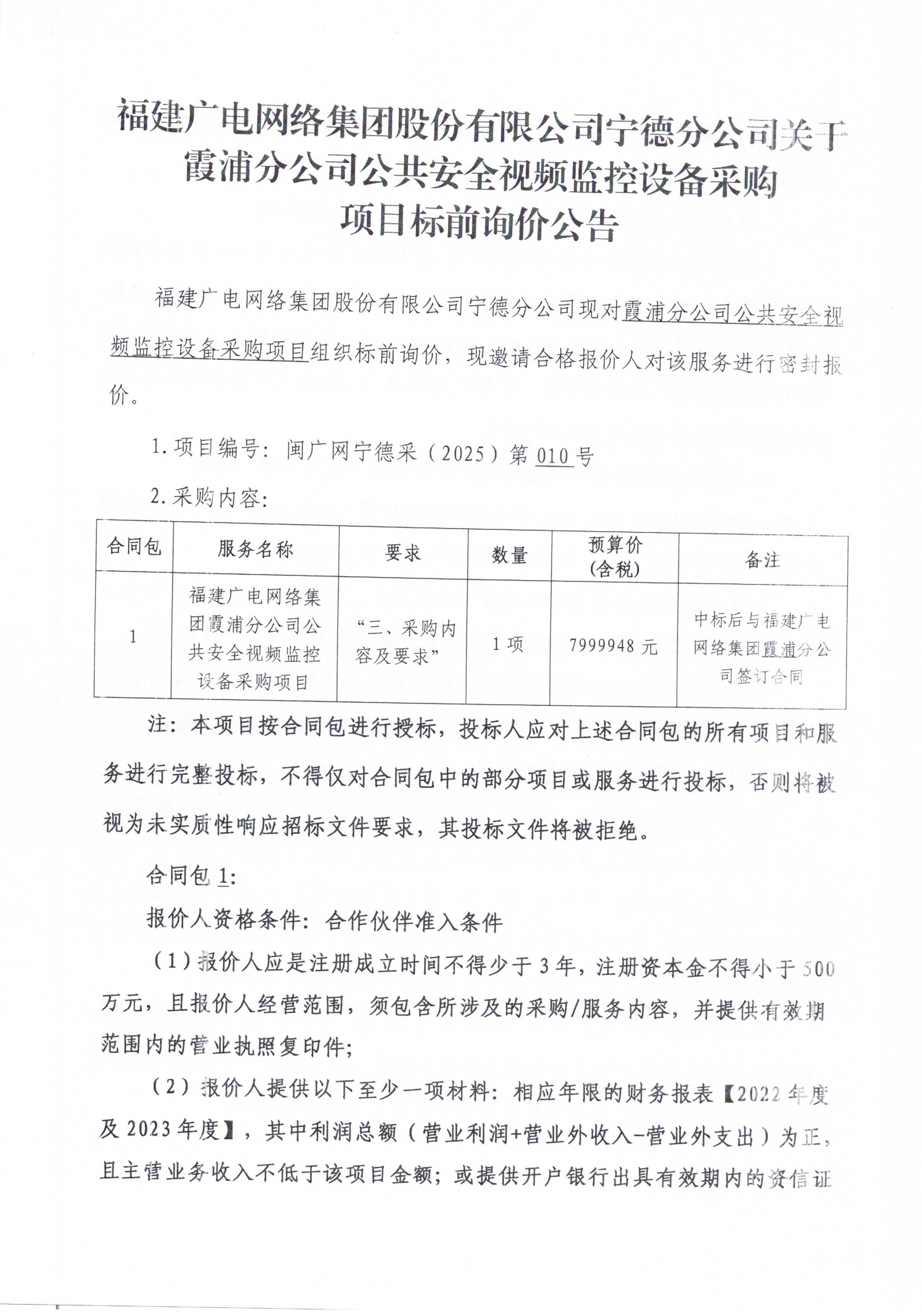 福建广电网络集团霞浦分公司公共安全视频监控设备采购项目