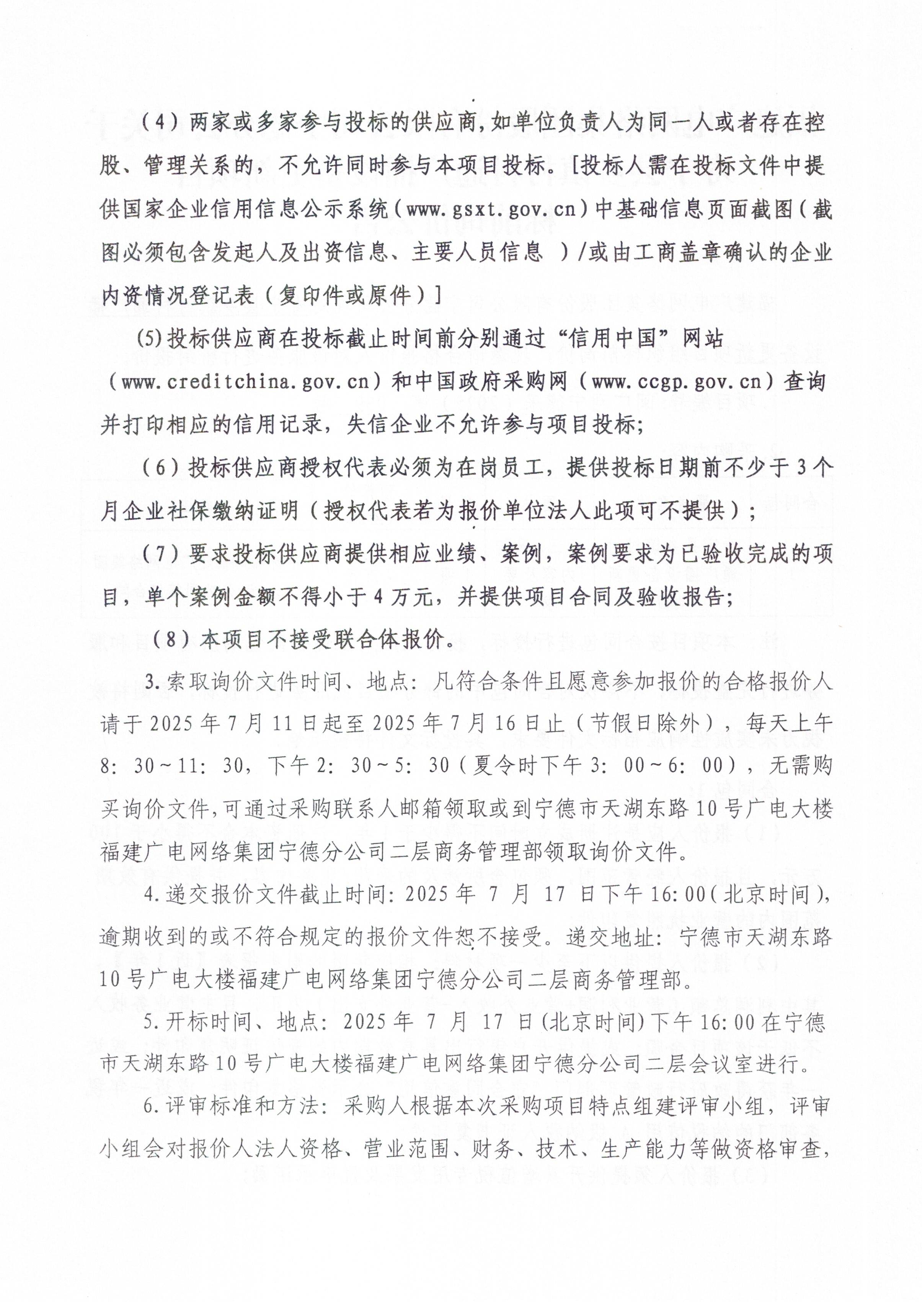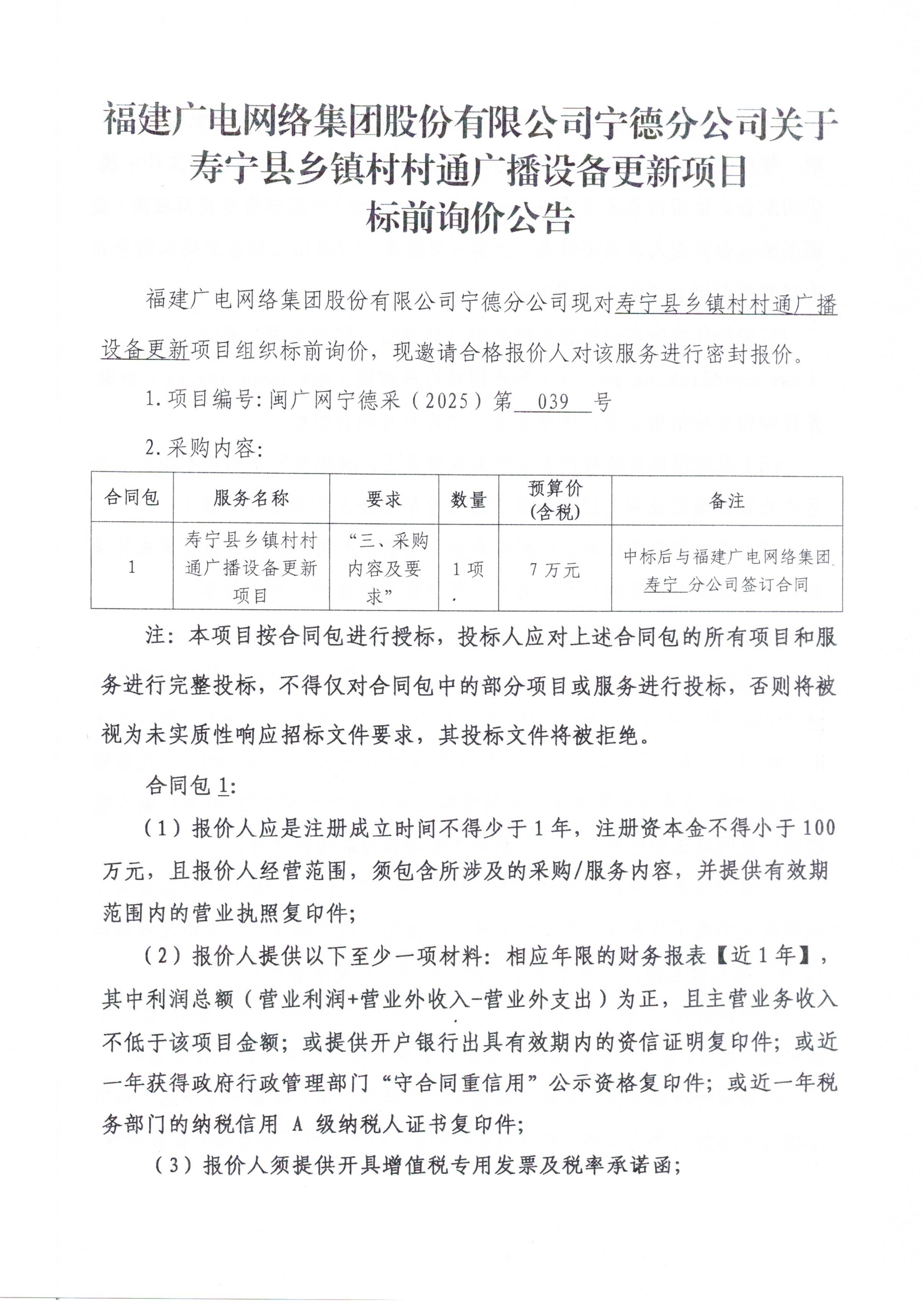 福建网络集团股份有限公司宁德分公司关于寿宁县乡镇村村通广播设备更新项目