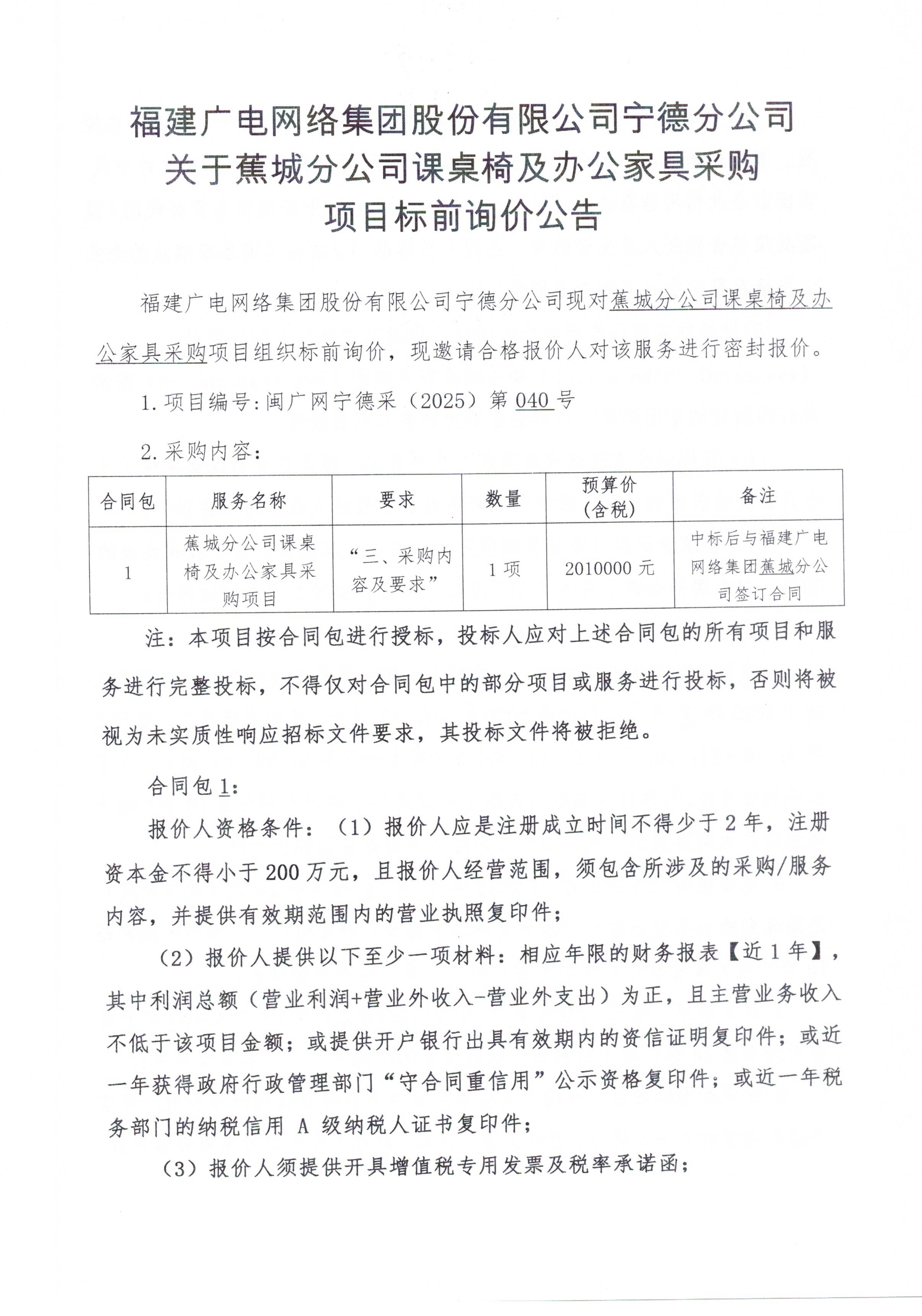 新利网上注册首页(中国)官方网站宁德分公司关于蕉城分公司课桌椅及办公家具采购项目