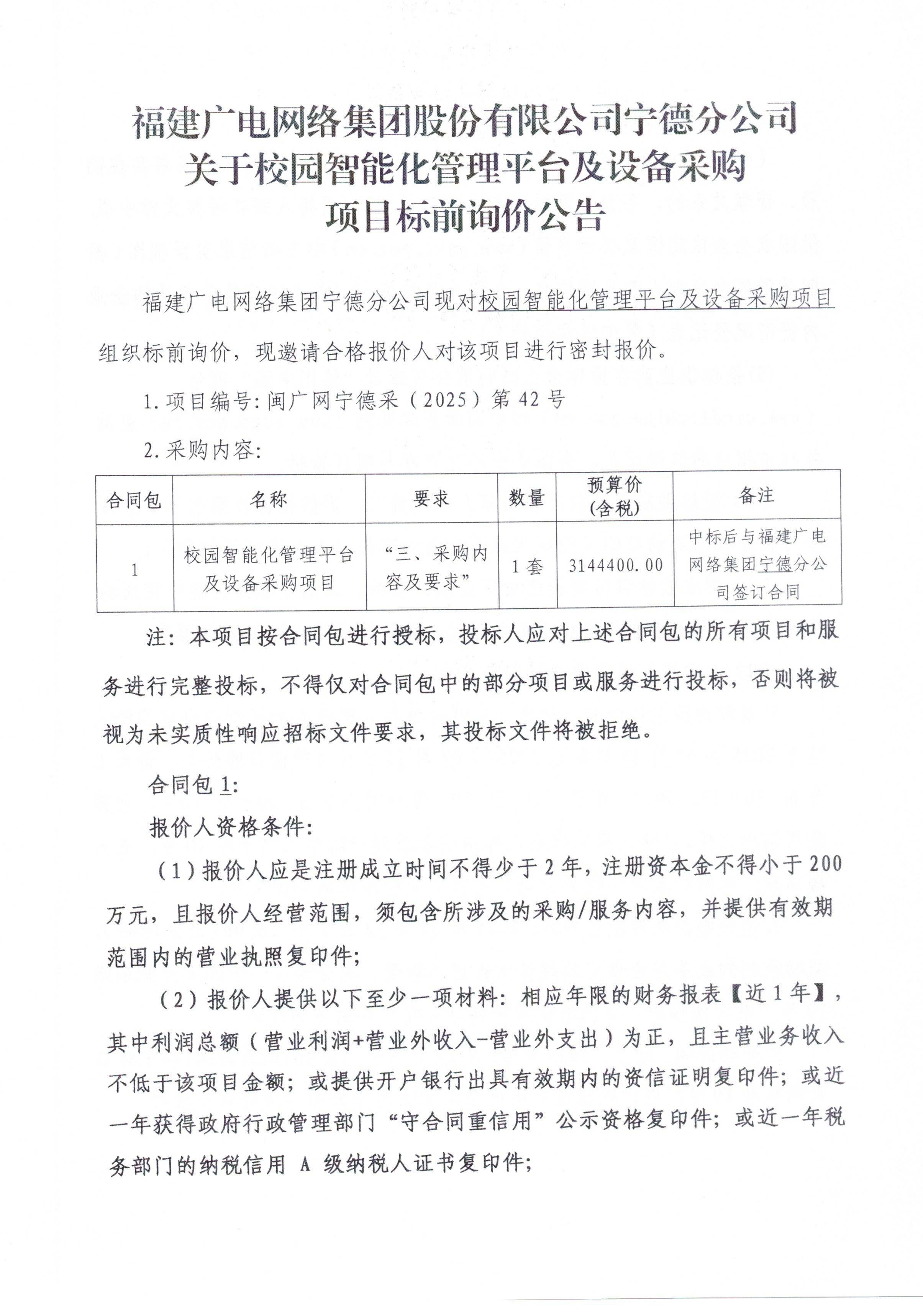 新利网上注册首页(中国)官方网站宁德分公司关于校园智能化管理平台及设备采购项目