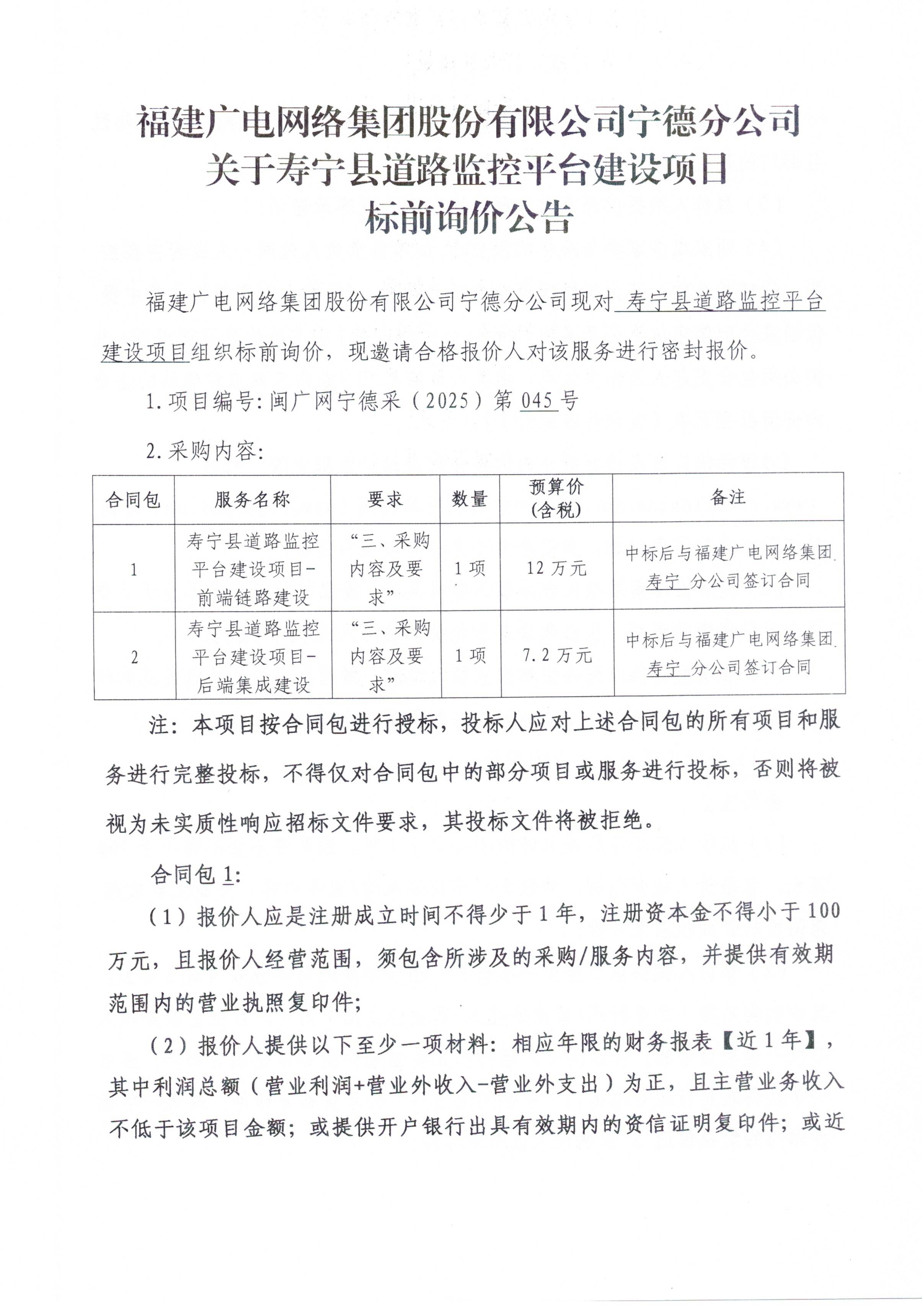 新利网上注册首页(中国)官方网站宁德分公司寿宁县道路监控平台建设项目