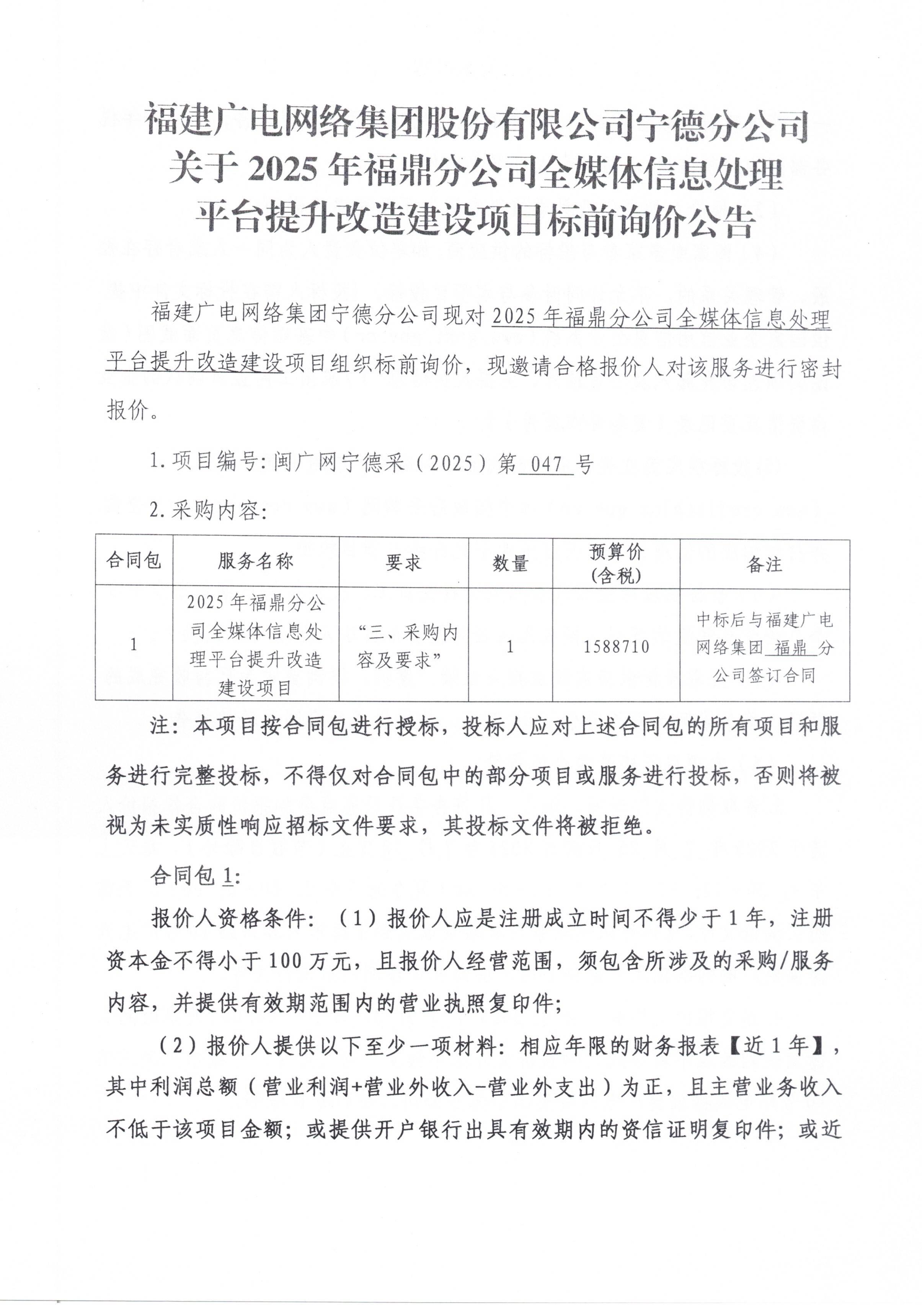 2025年福鼎分公司全媒体信息处理平台提升改造建设(标前询价)