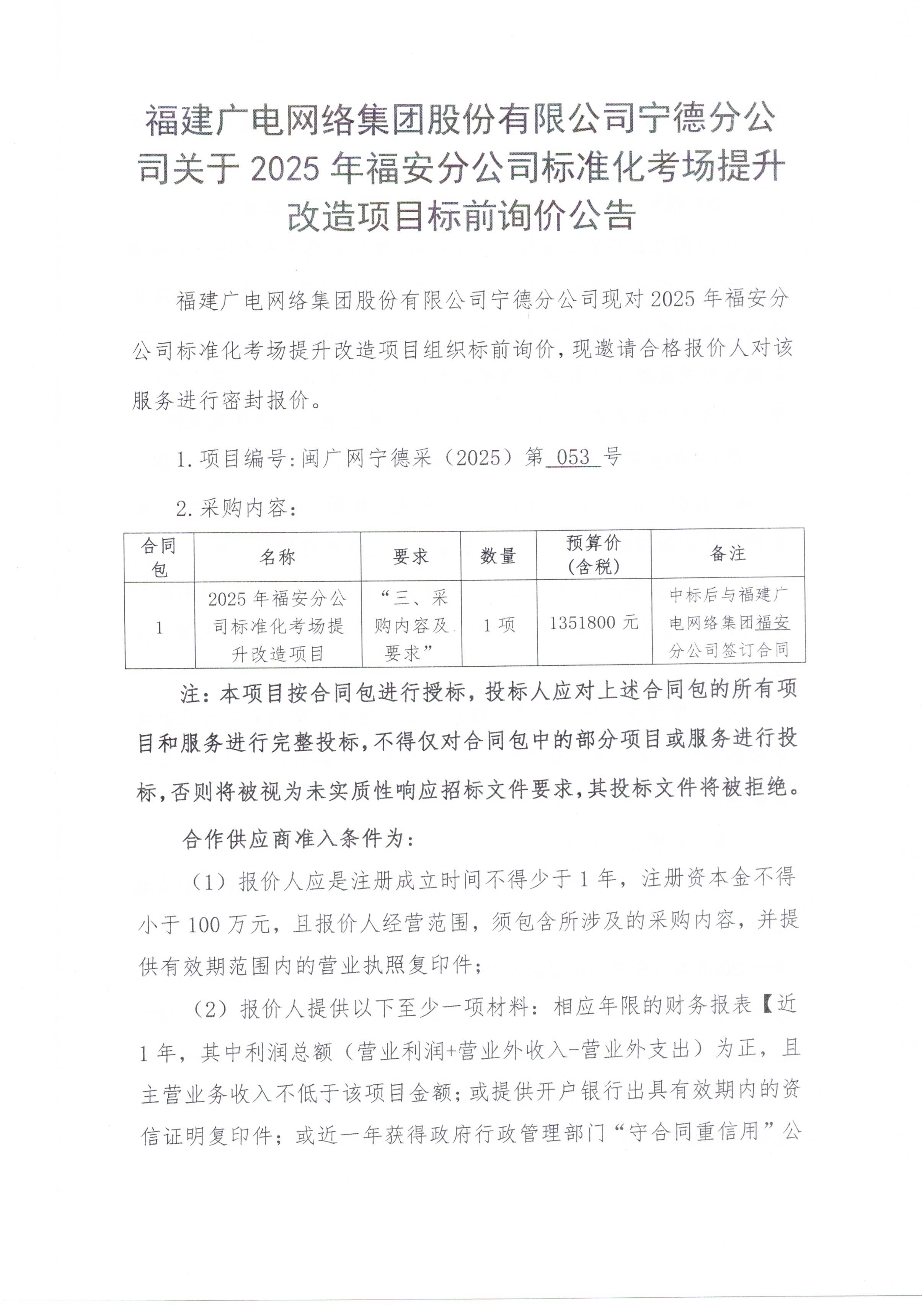新利网上注册首页(中国)官方网站宁德分公司关于2025年福安分公司标准化考场提升改造项目