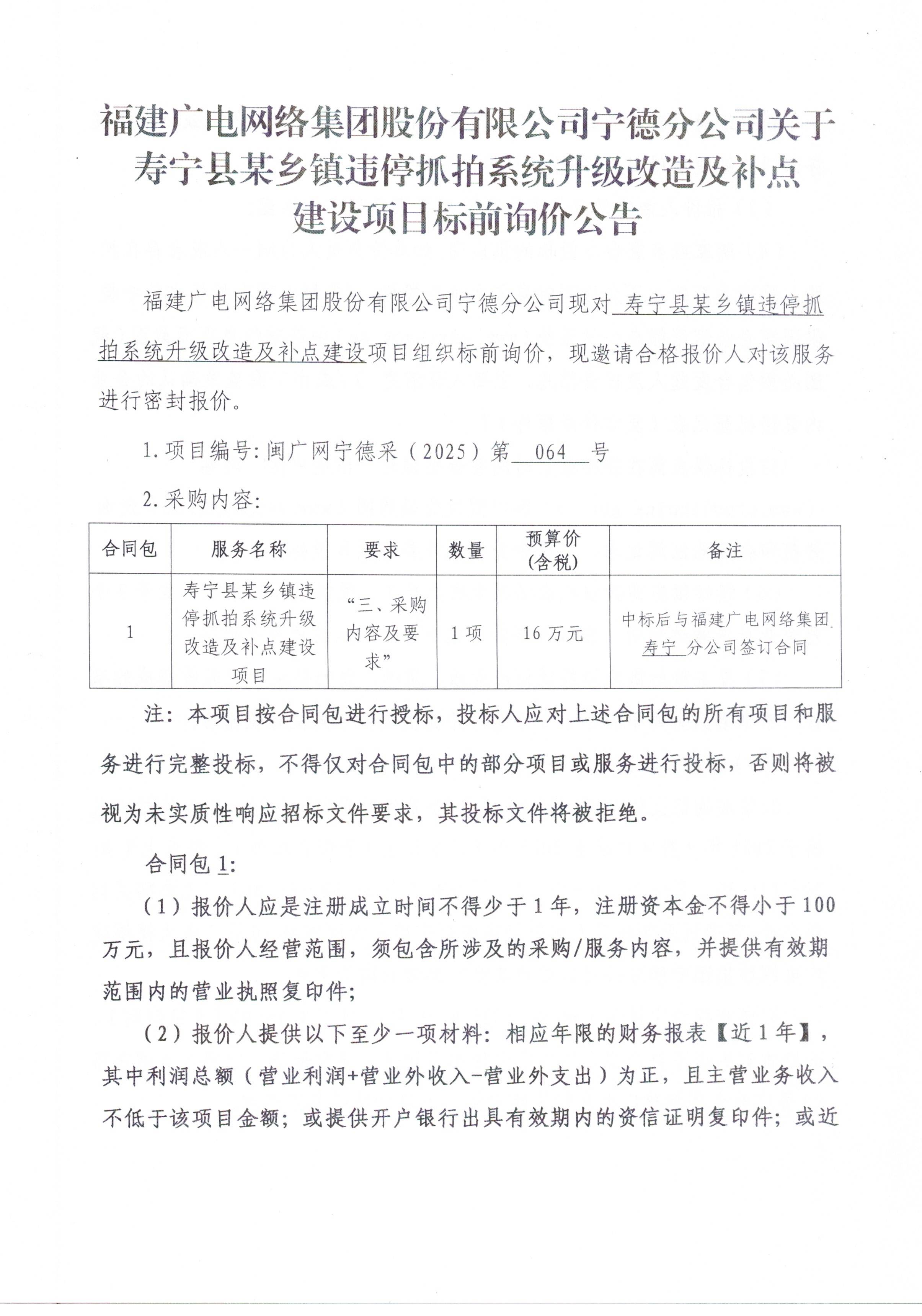 寿宁县某乡镇违停抓拍系统升级改造及补点建设项目