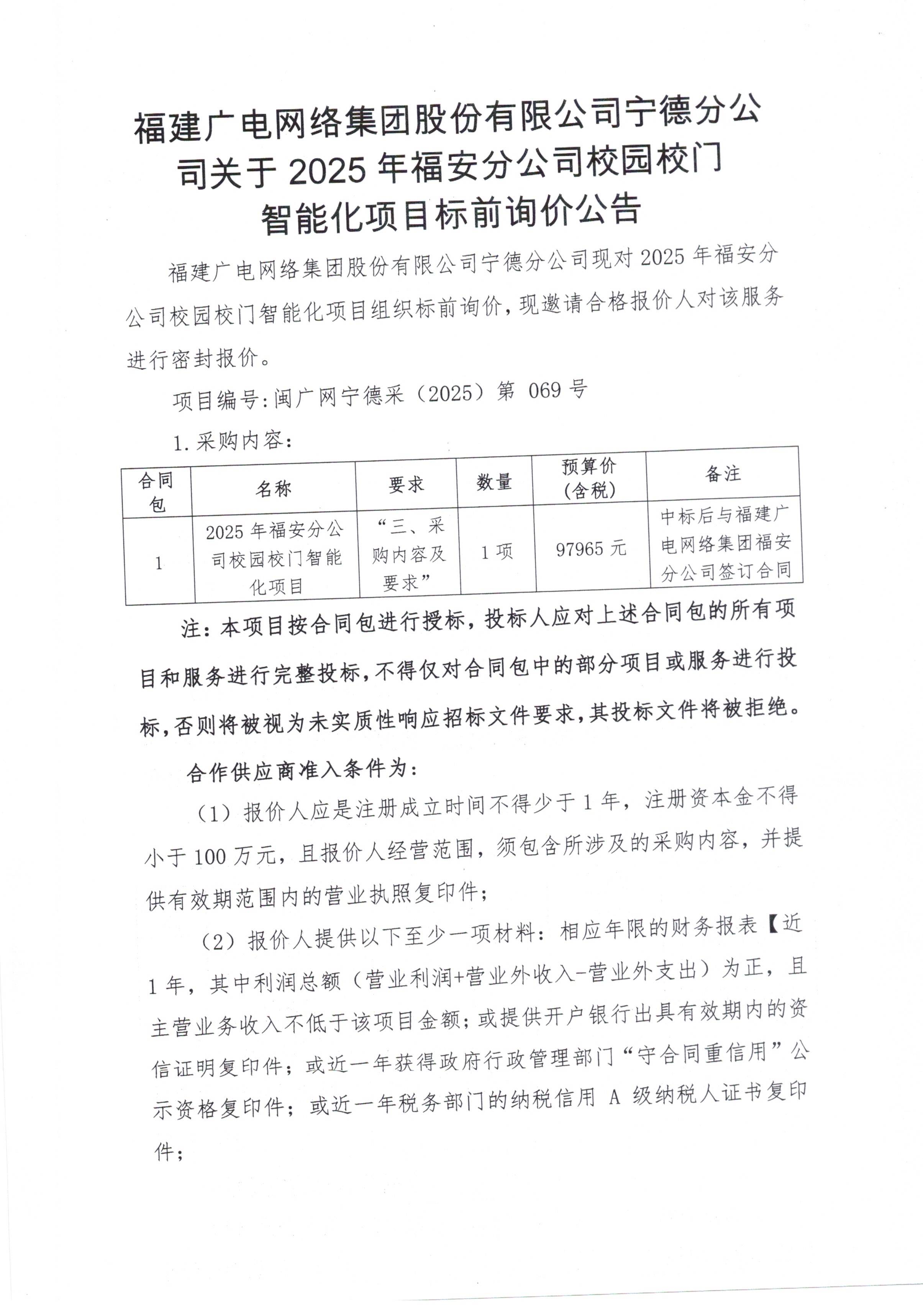 新利网上注册首页(中国)官方网站宁德分公司关于2025年福安分公司校园校门智能化项目