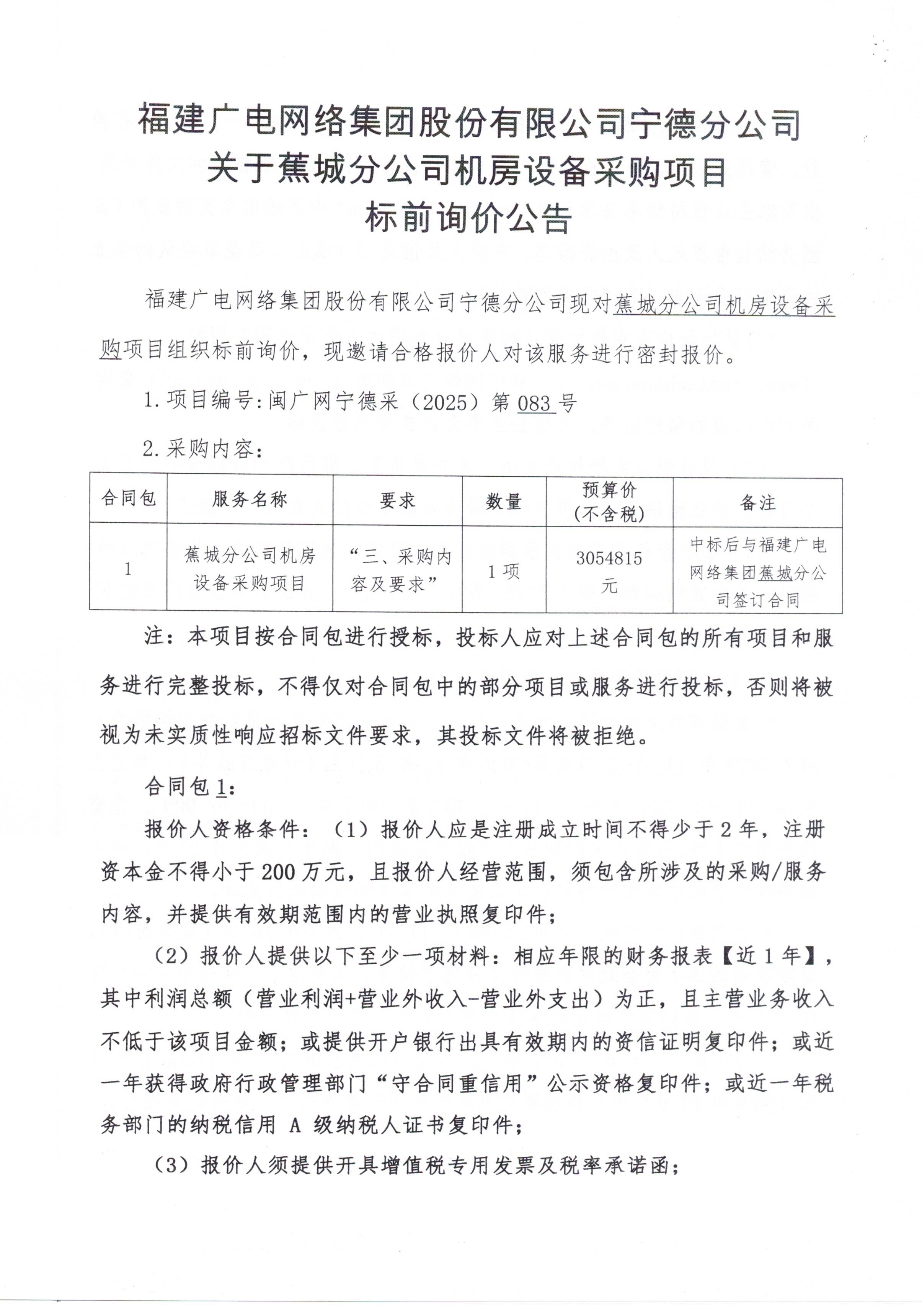 新利网上注册首页(中国)官方网站宁德分公司关于蕉城分公司机房设备采购项目