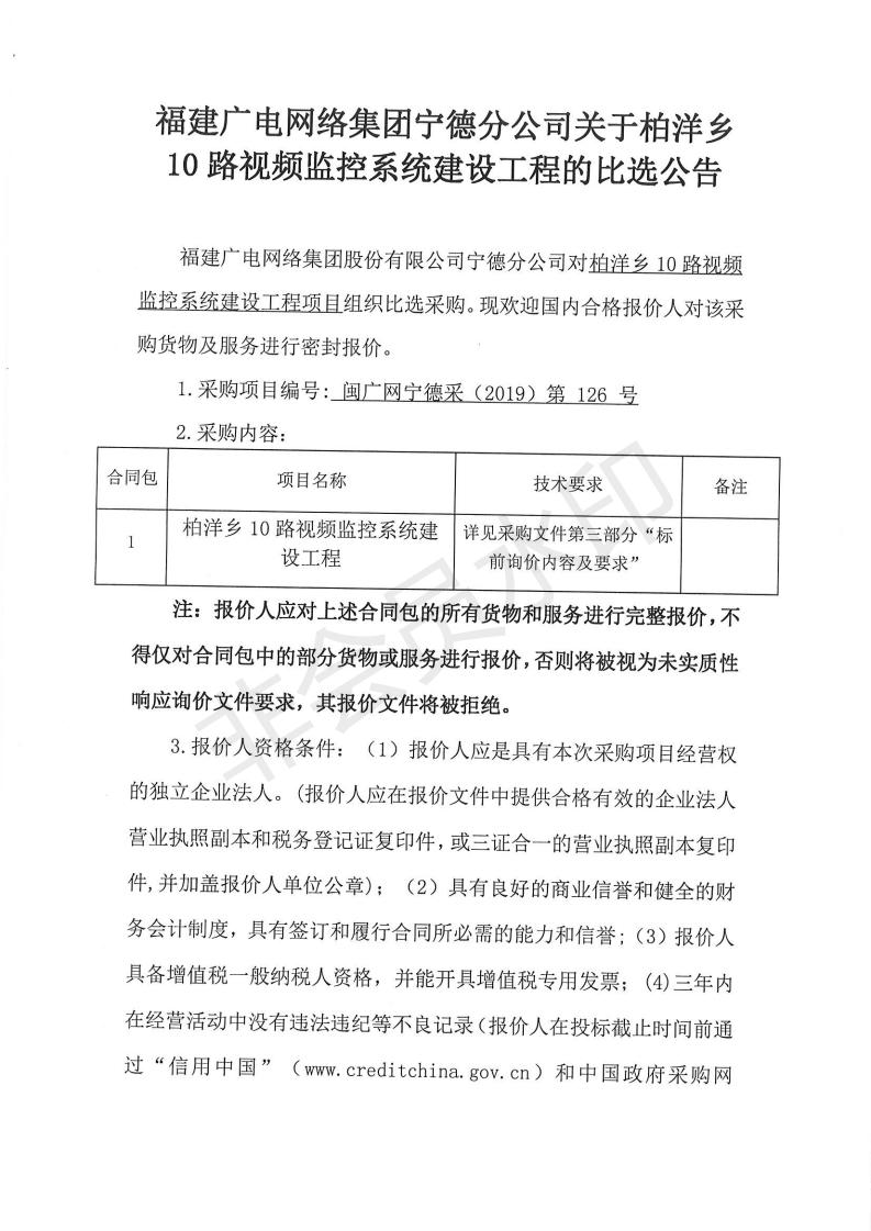 宁德分公司柏洋乡10路视频监控系统建设工程的比选公告