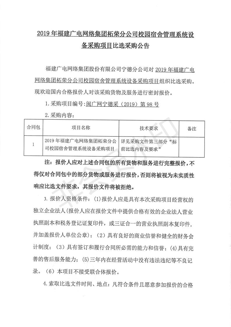 柘荣分公司校园宿舍管理系统设备采购项目比选采购公告