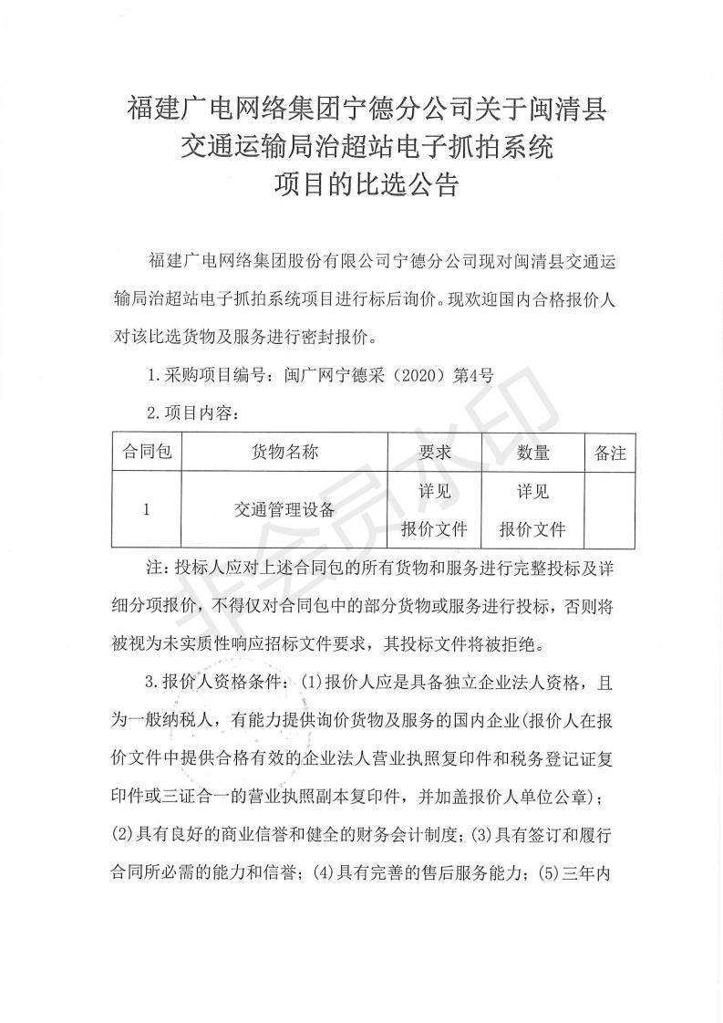 闽清县交通运输局治超站电子抓拍系统项目的比选公告