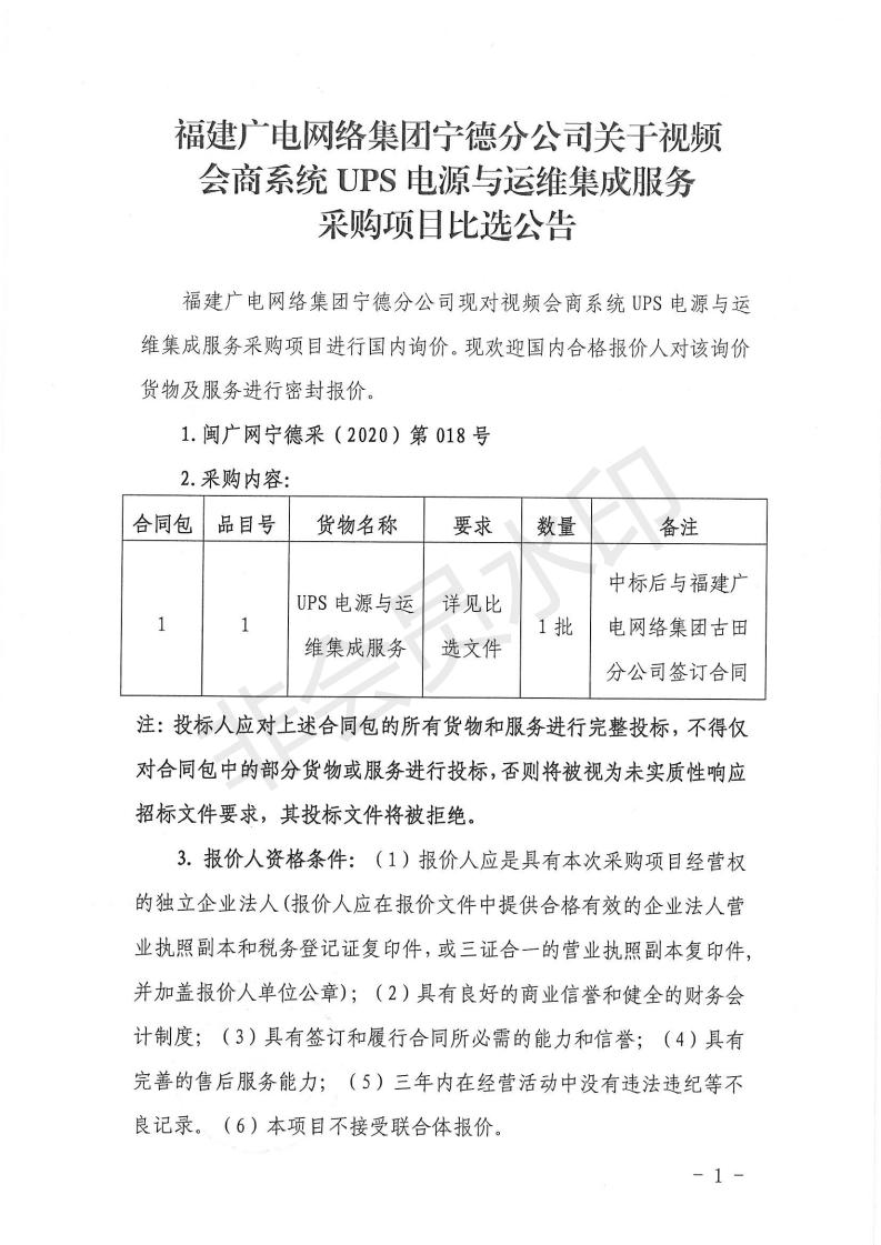 视频会商系统UPS电源与运维集成服务采购项目比选公告