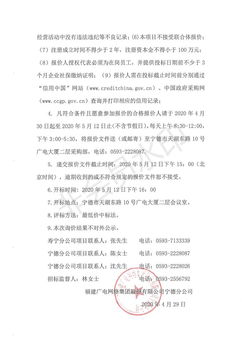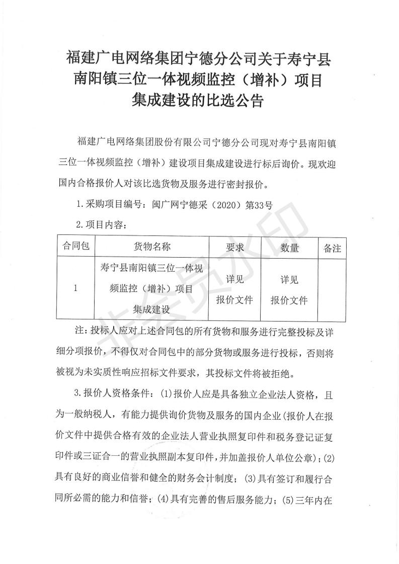 寿宁县南阳镇三位一体视频监控(增补)项目集成建设的比选公告