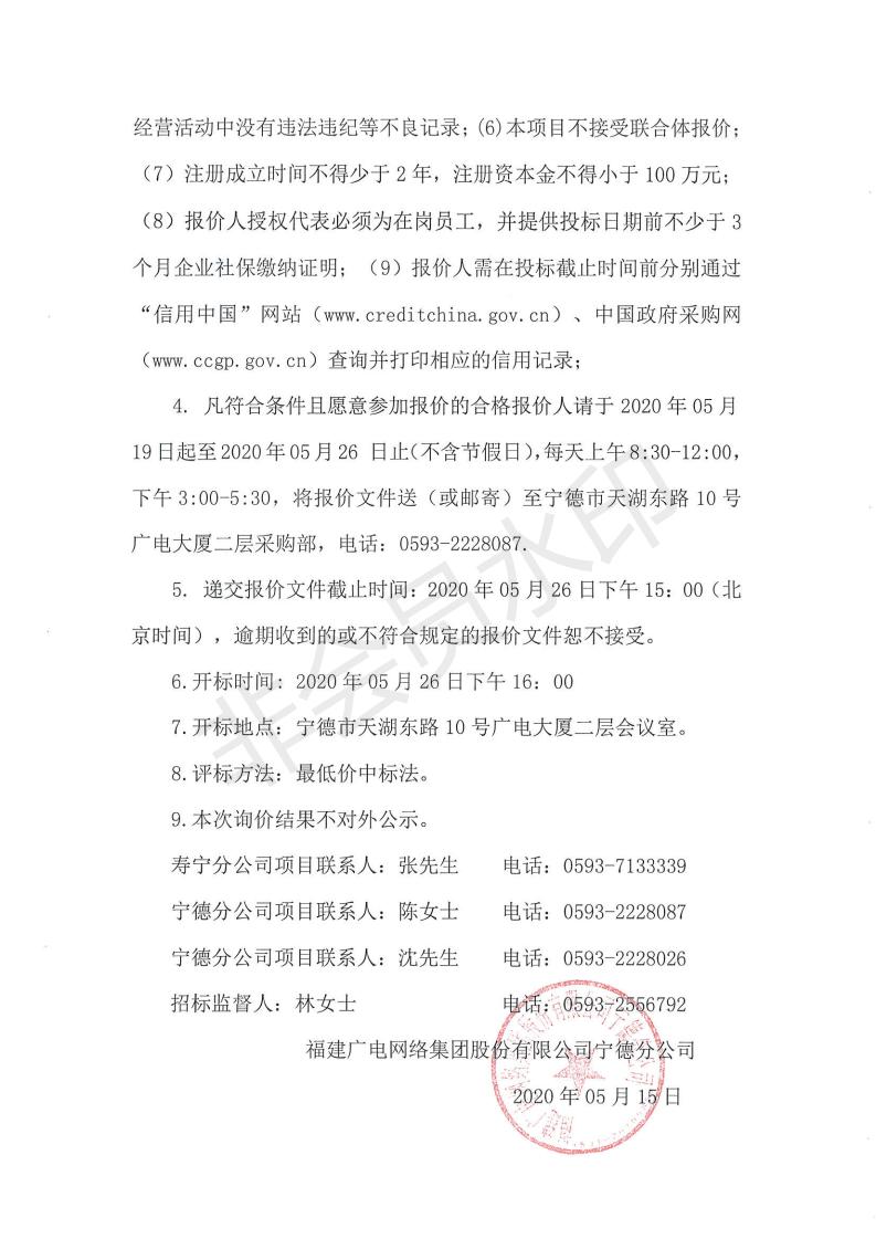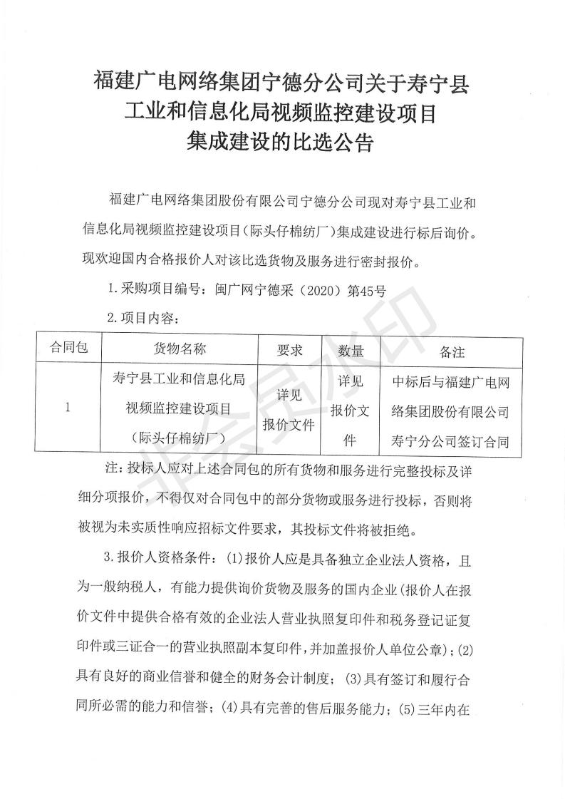 寿宁县工业和信息化局视频监控建设项目集成建设的比选公告