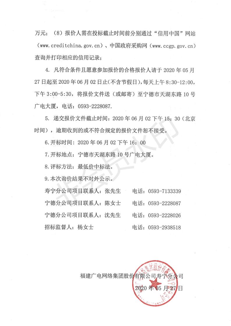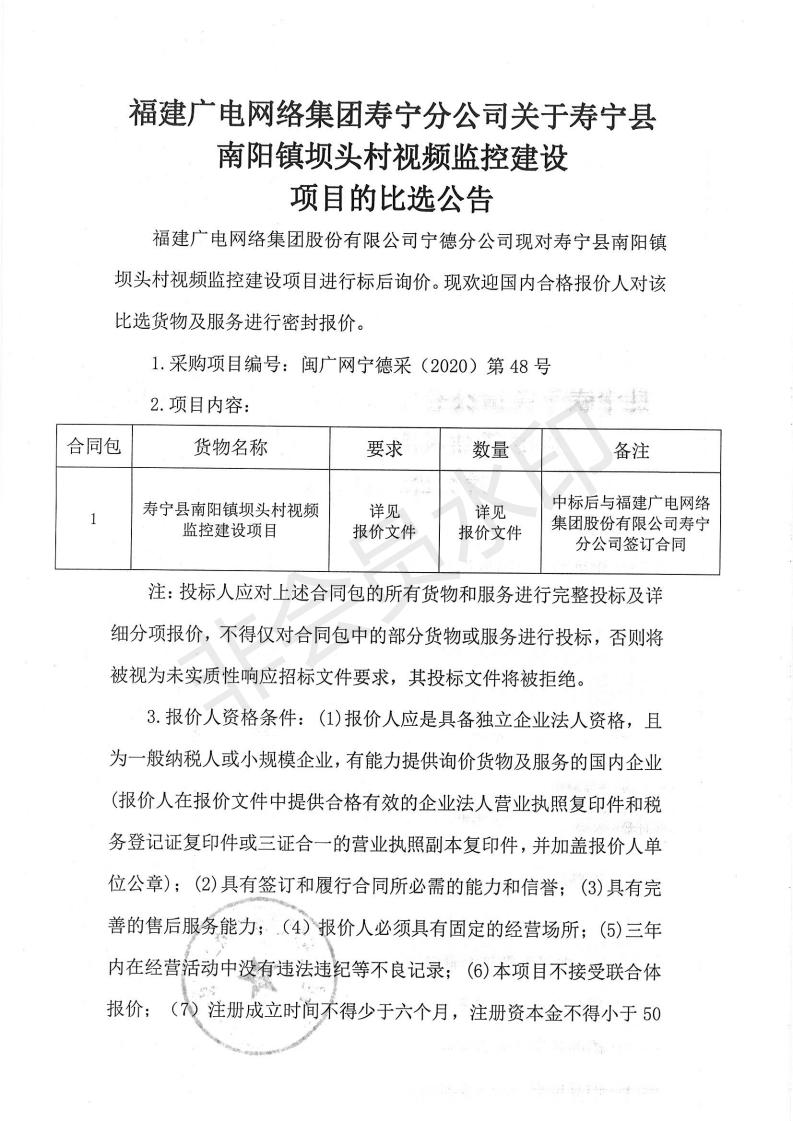 寿宁县南阳镇坝头村视频监控建设项目的比选公告