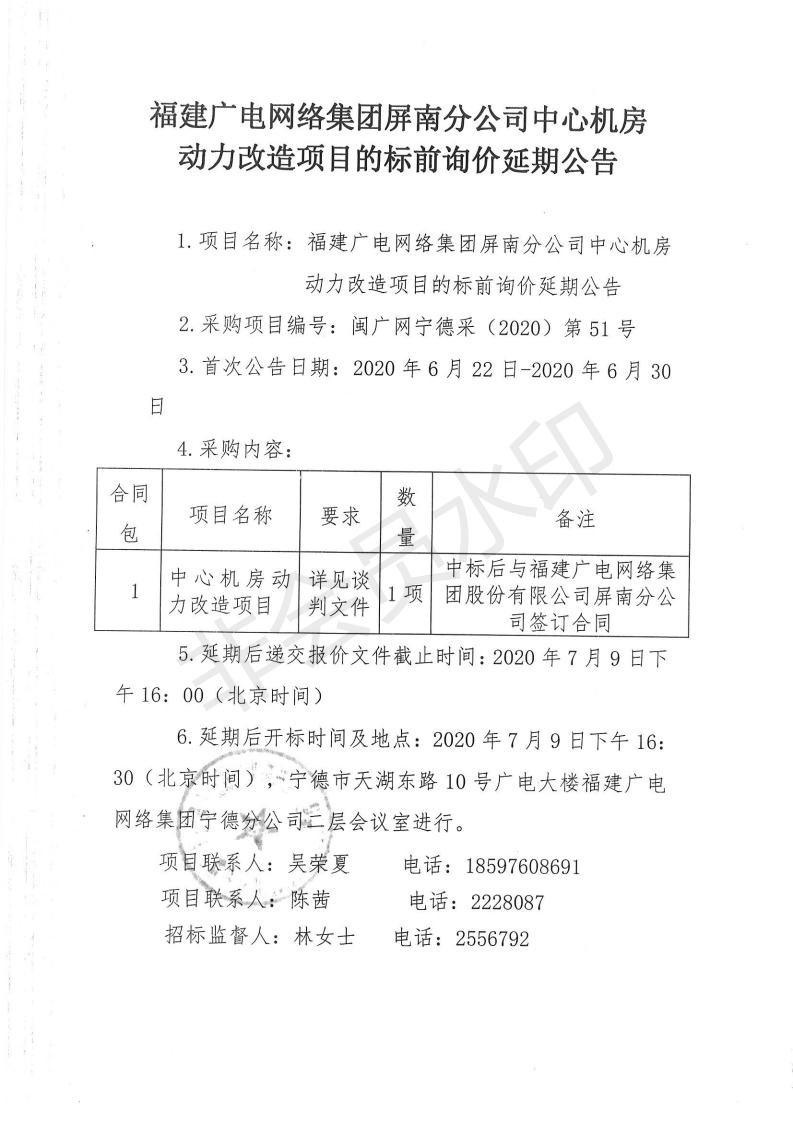 屏南分公司中心机房动力改造项目的标前询价延期公告