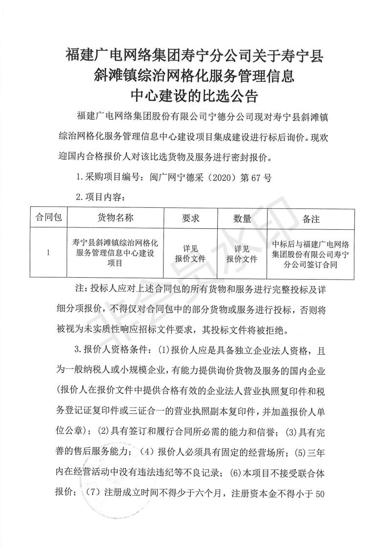 寿宁县斜滩镇综治网格化服务管理信息中心建设的比选公告