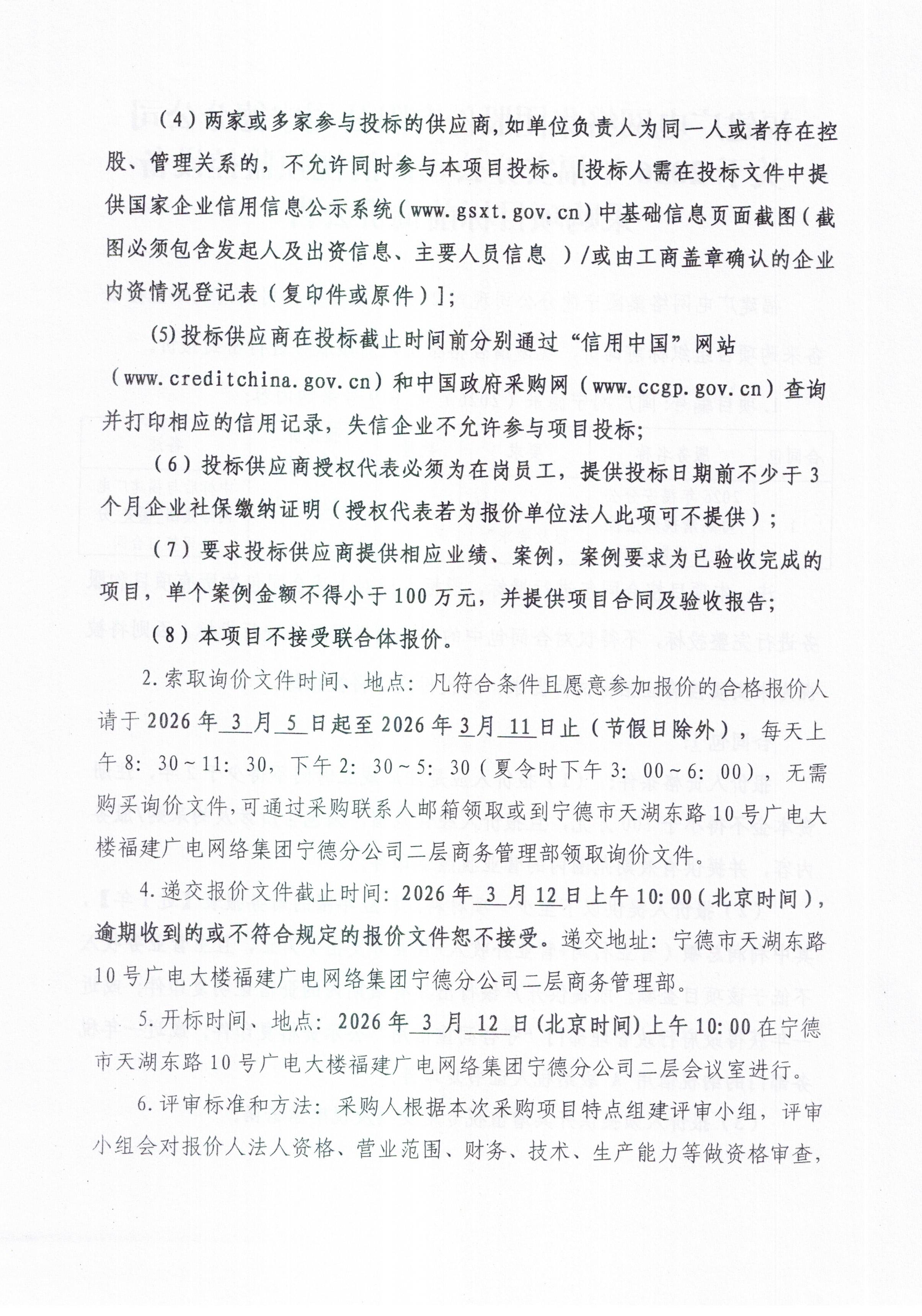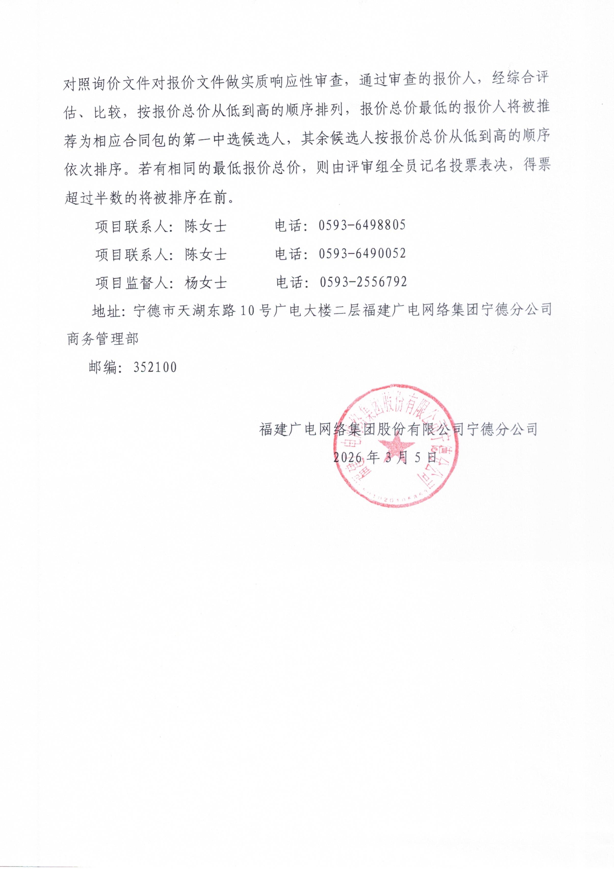 2026年福安分公司高清视频监控设备采购公告(标前询价)