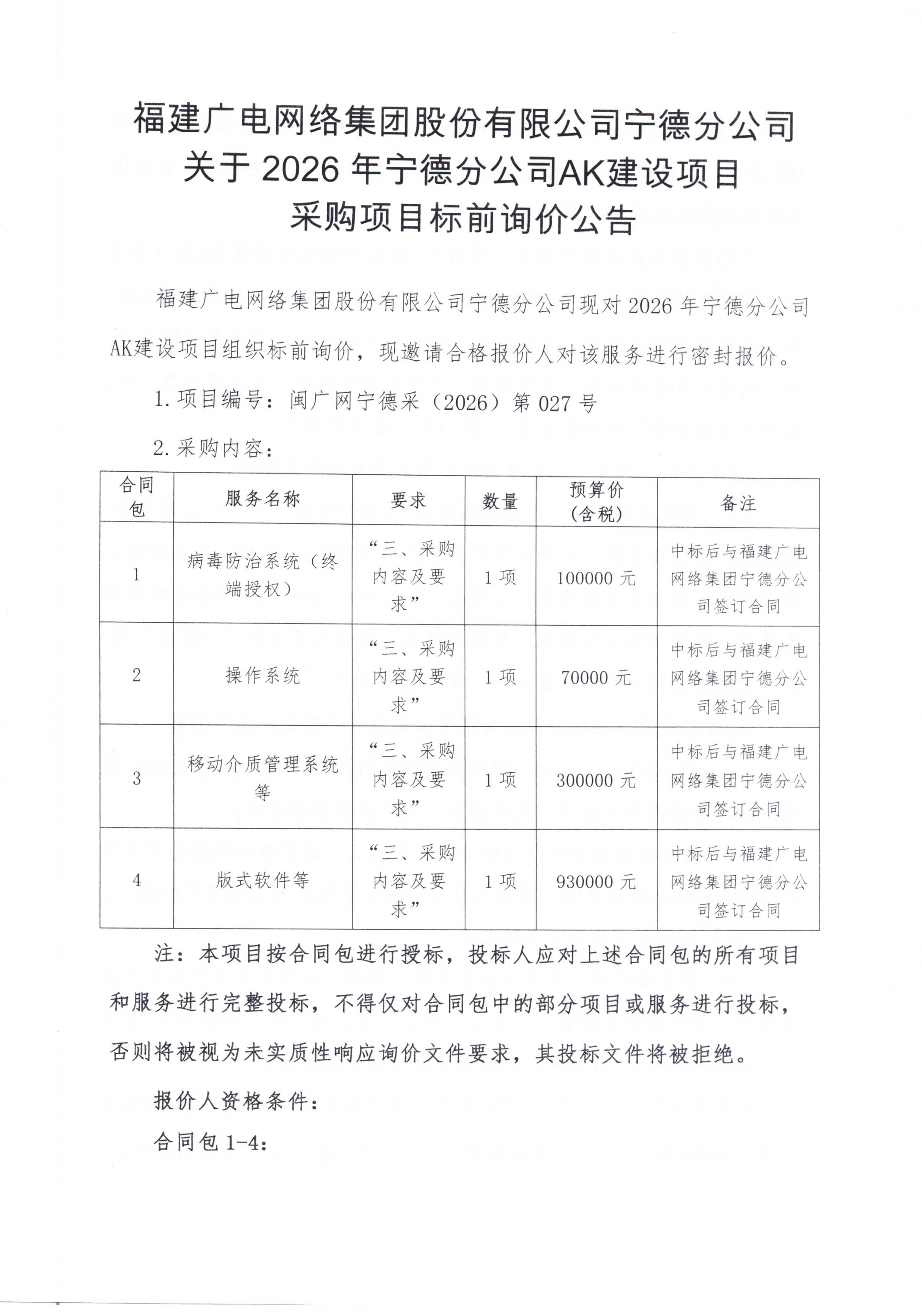 2026年宁德分公司AK建设项目公告