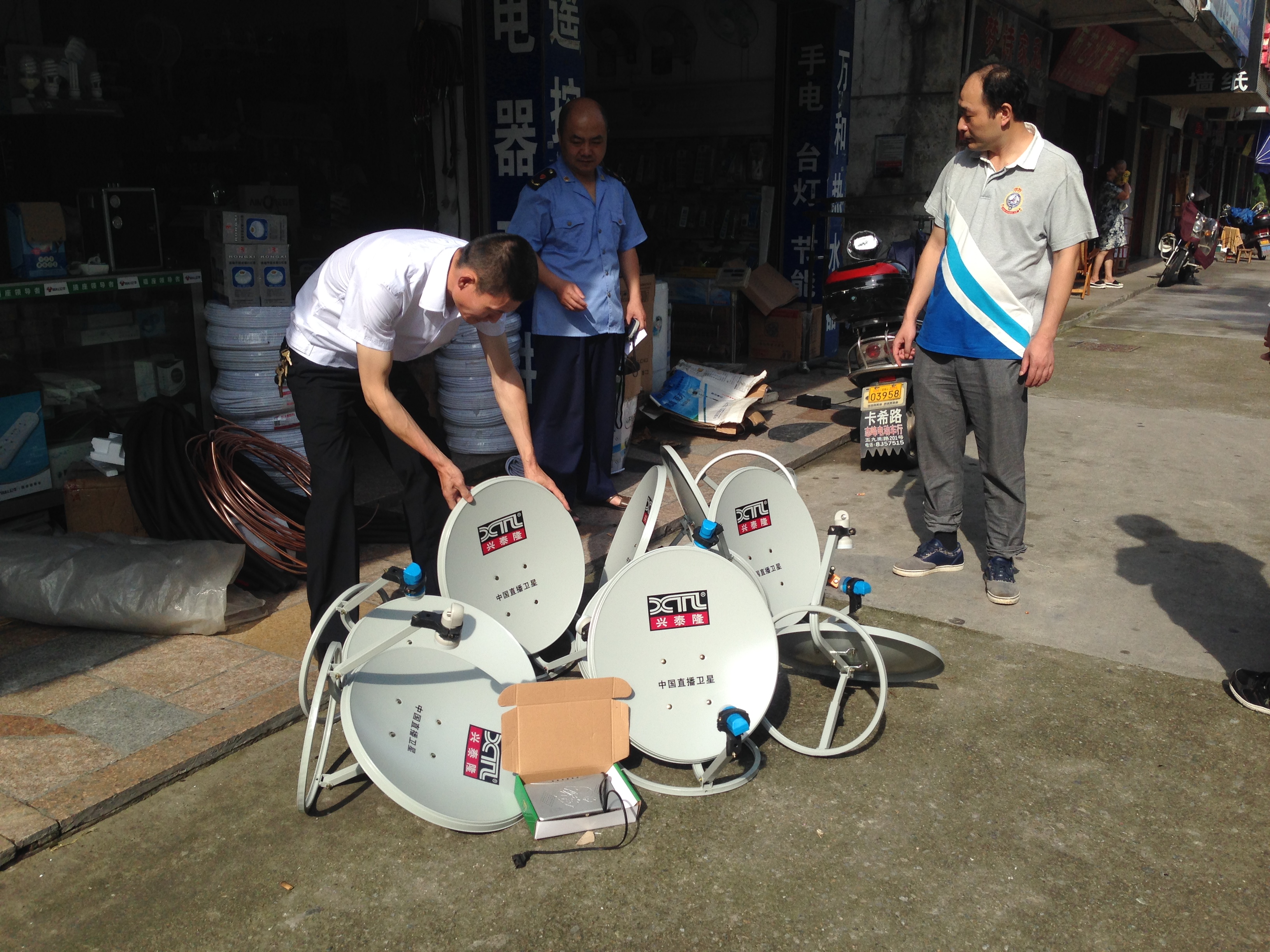 针对近期非法销售卫星电视广播地面接收设施有所抬头的趋势,6月9至10日,武夷山分公司配合武夷山市公安、工商、广电局、文体新局和市文化执法大队组成的联合执法组对武夷山市城区范围突击开展打击非法销售卫星电视广播地面接收设施的行动。