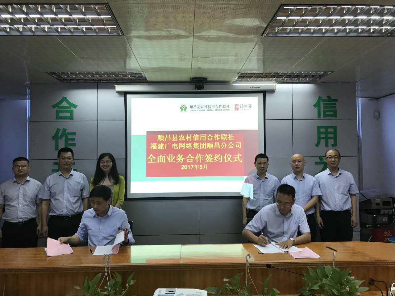 5月9日,顺昌分公司与顺昌农村信用联社举办全面业务合作签约仪式。
