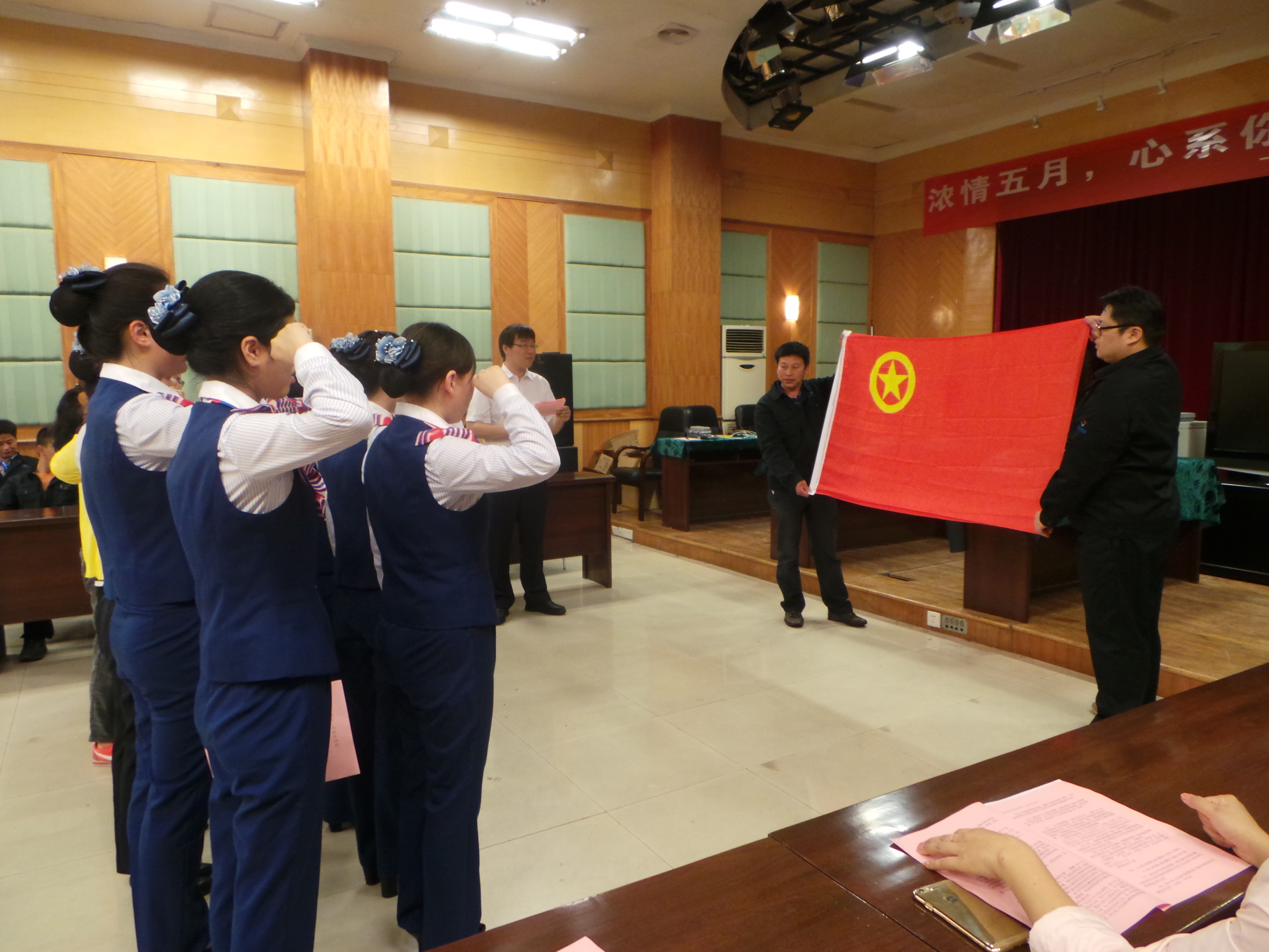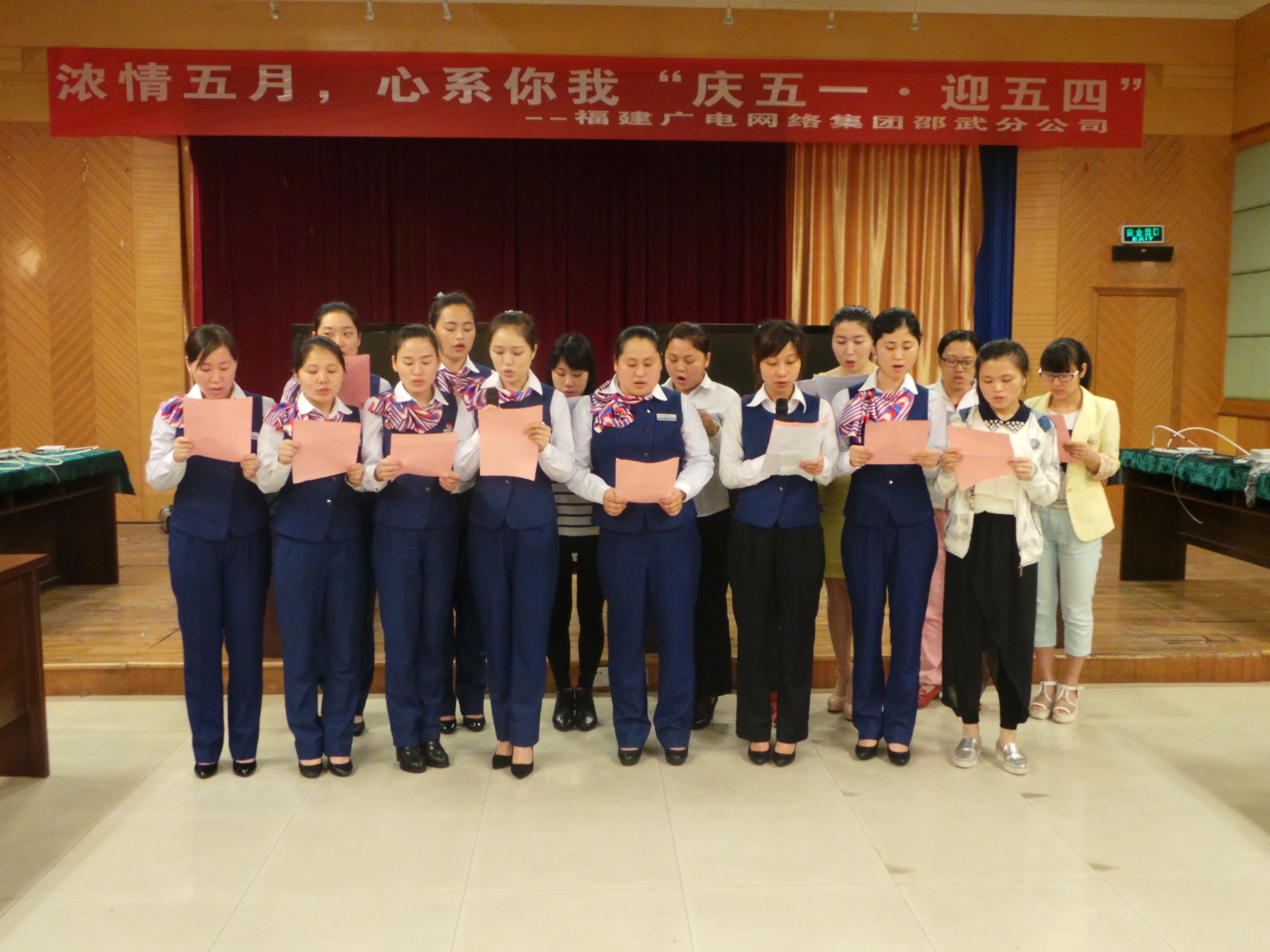 “五四”青年到来之际,邵武分公司组织20多名青年团员在庄严的团旗下,重温入团誓词,践行青春誓言,同时重唱了高亢激昂的中国共青团团歌—《光荣啊,中国共青团》。