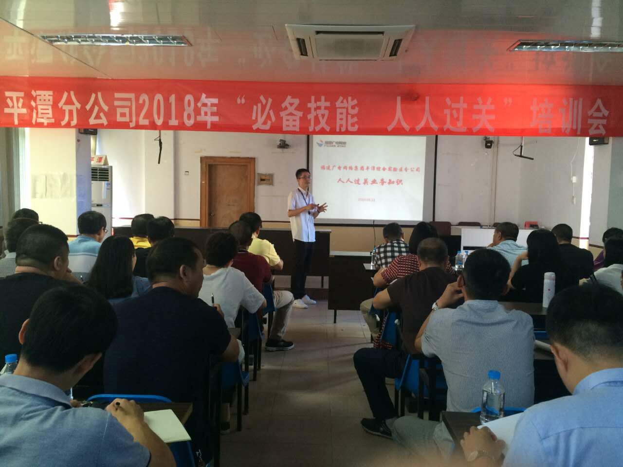 为贯彻落实集团“必备技能,人人过关”的要求,进一步提高员工业务素质,增强业务能力,建设一支高素质、业务精的服务团队,8月11日,平潭分公司开展“必备技能,人人过关”培训会,公司全体员工(除值班人员外)共108名参加培训会。