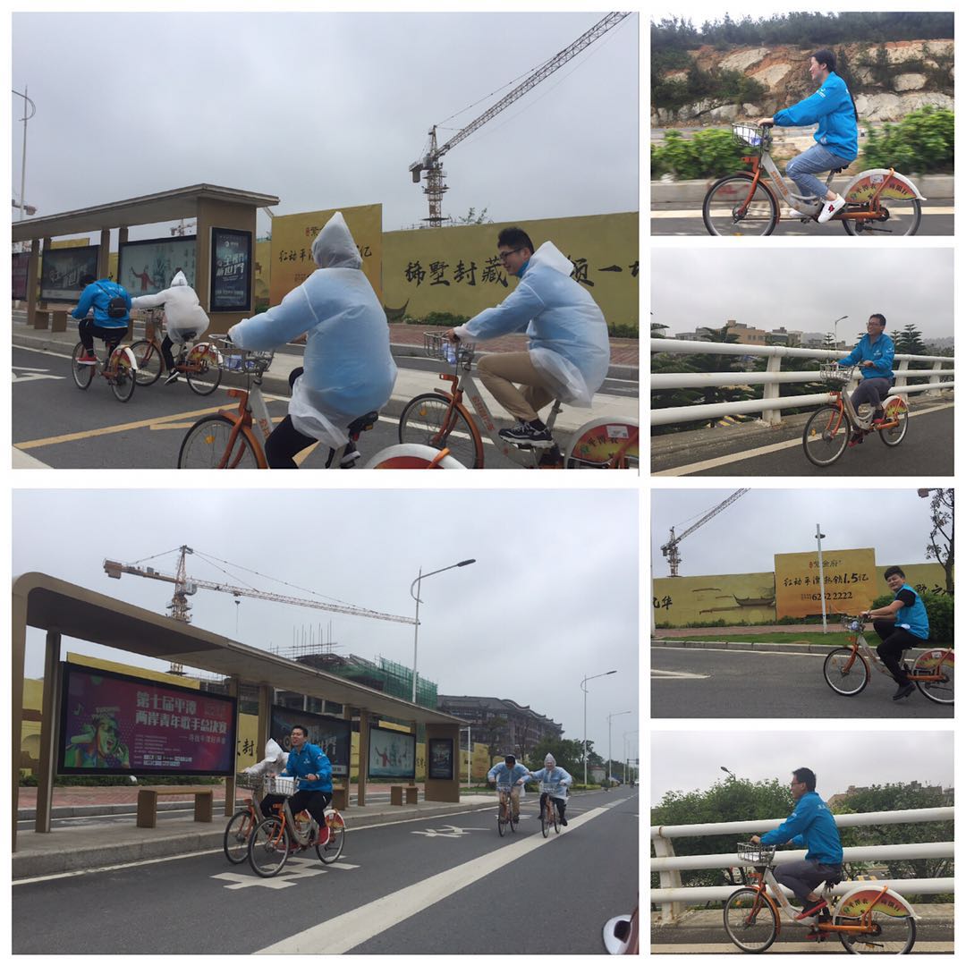 上午,平潭分公司青年团员在公司集合,一同步行前往共享单车停车点,整装待发,蓄势起航。团员们每人骑一辆共享单车,从海渔广场到海坛古城,沿着环岛路向南骑行,全程约20公里。活动沿线还设置了游戏互动和畅谈家乡建设环节,增加了活动的趣味性,更让大家身临其境地感受到平潭国际旅游岛的建设成果和美好风光。在蒙蒙细雨中,平潭广电网络青年团员骑行队成为了另一道靓丽的风景线。