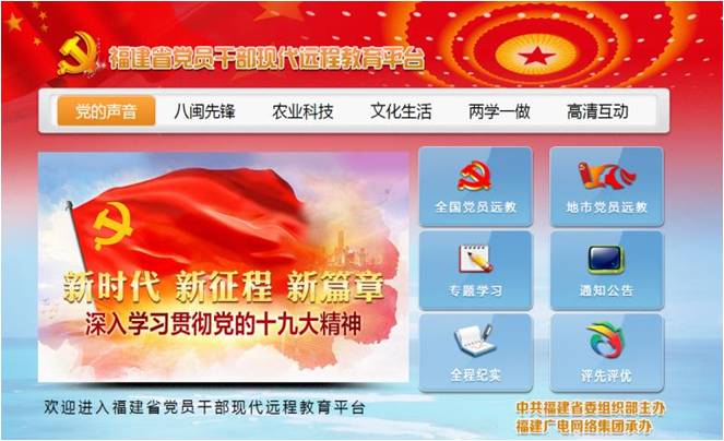 与省委组织部合作,借助省组下发的相关政策文件,基于高清互动云电视平台和电视路由系统,搭建福建省党员干部现代远程教育平台。各地市分平台对接各级市县组织部门,为各级市县组织部门提供个性化党员教育门户系统。