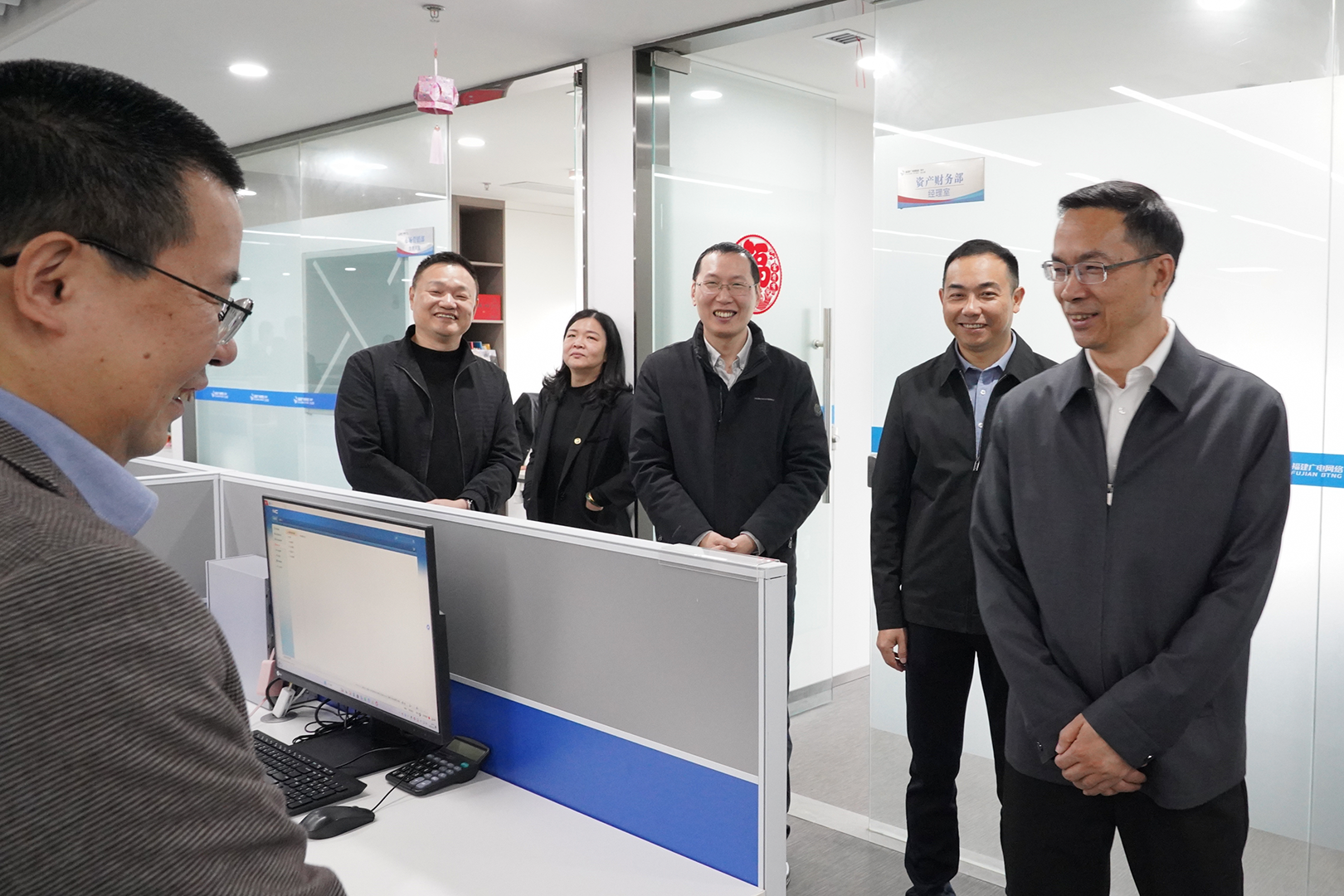 在泉州分公司,集团党委委员、副总经理陈剑峰走访各部门及营业厅,向干部职工拜年鼓劲。勉励大家在新的一年里以“起步即冲刺”的劲头深耕政企拓展、做优市场服务,把集团的部署转化为泉州分公司的实干实效,以开门红引领全年红。